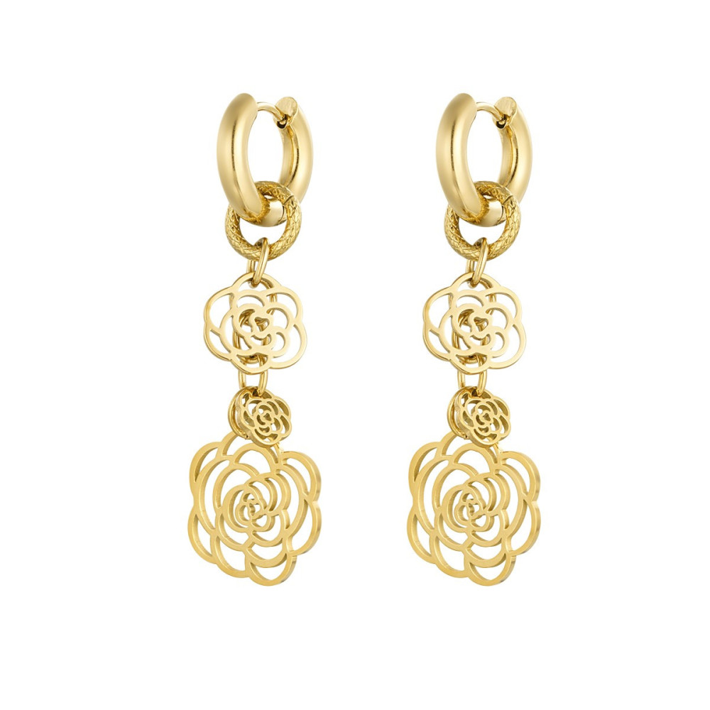 Chic et légères, les boucles Roselia Earrings complètent votre tenue grâce à leurs roses ajourées. Leur finition dorée assure la touche glamour et les rendent parfaites pour toutes les occasions, du brunch entre amis à la soirée cocktail.